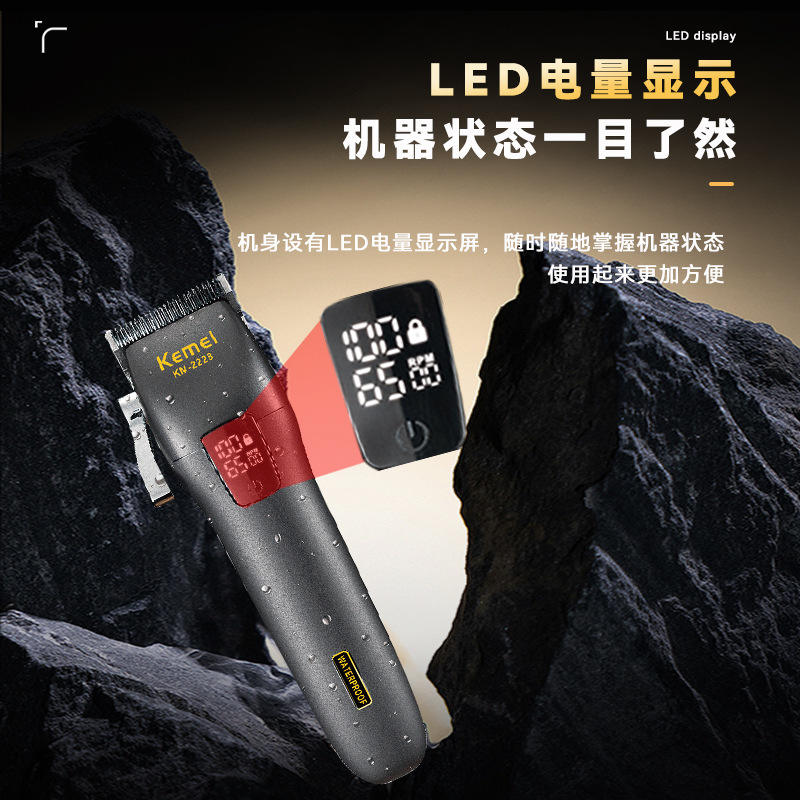 Kemei Electric Hair Clipper KM-2228 Digital Display Waterproof Professional Trimmer With Brushless Motor USB Charging