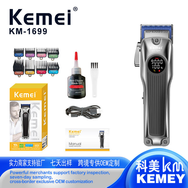 Kemei Electric Hair Clipper Km 1699 With Lcd Display Brushless Motor Metal Body Usb Rechargeable Professional Hair Trimmer