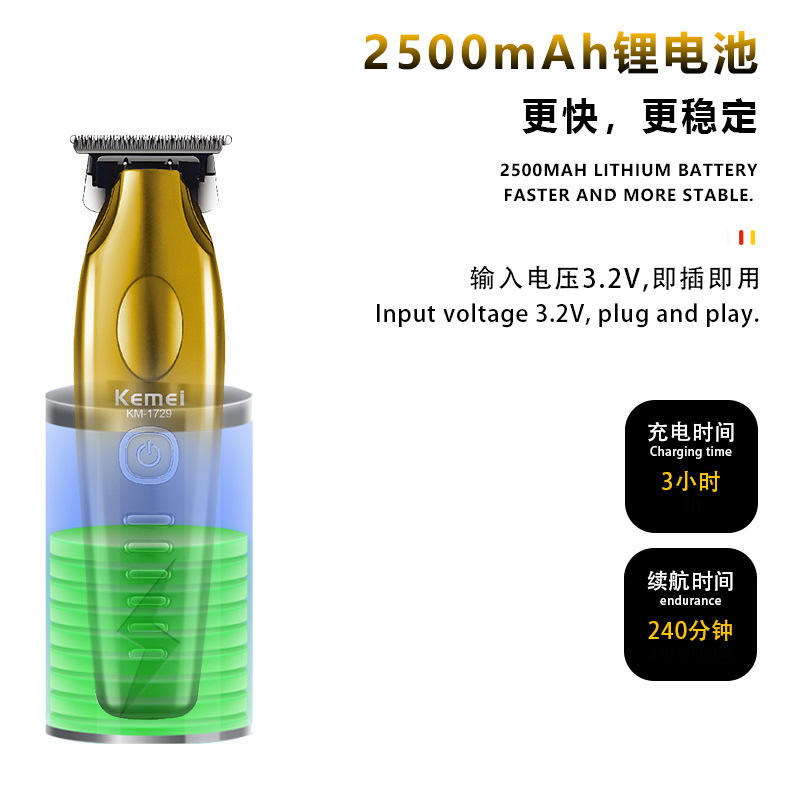 Kemei Electric Hair Clipper Km-1729 15.5cm Brushless Motor High Speed Professional Hair Cutting Tool