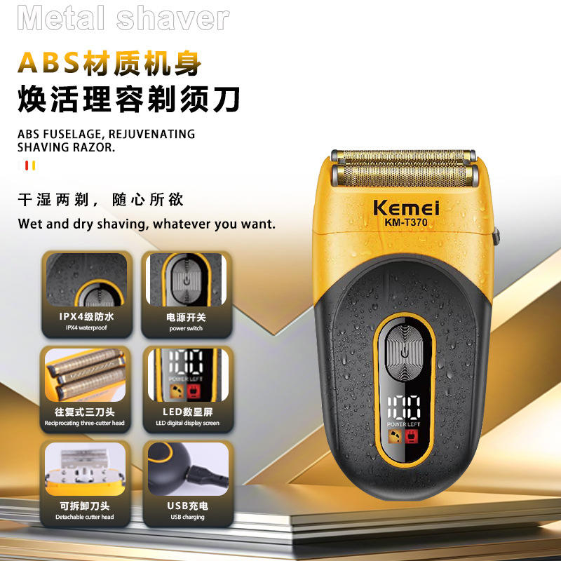 Kemei Electric Shaver KM T370 Triple Blade IPX4 Waterproof USB Rechargeable Men's Razor With LED Display
