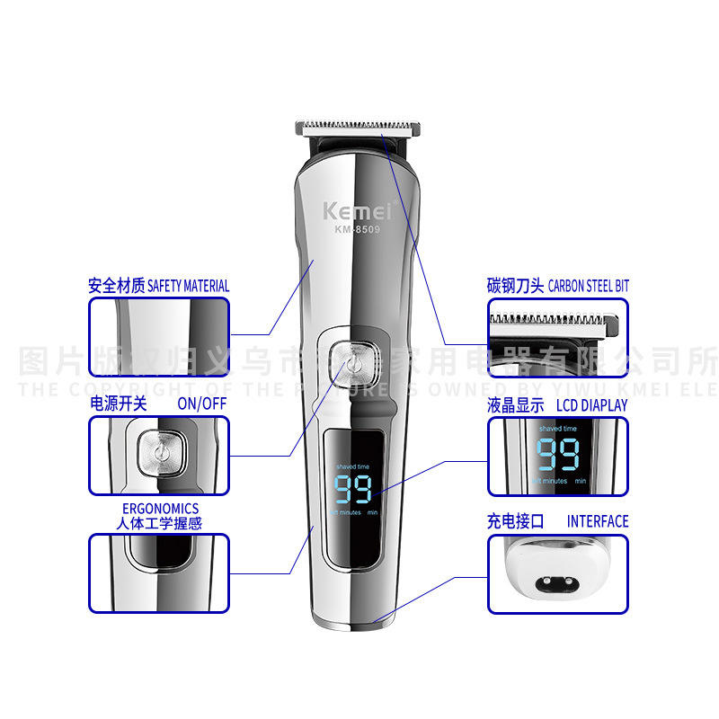 Kemei Professional Hair Clipper KM-8509 Digital Display Rechargeable USB Charging For Home Use