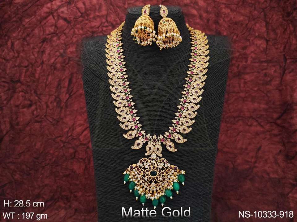 Kemp Jewelry Matte Gold Polish Designer Western Fancy Style Beautiful Design Clusterpearls Kemp Long Necklace Set Jewelry Sets