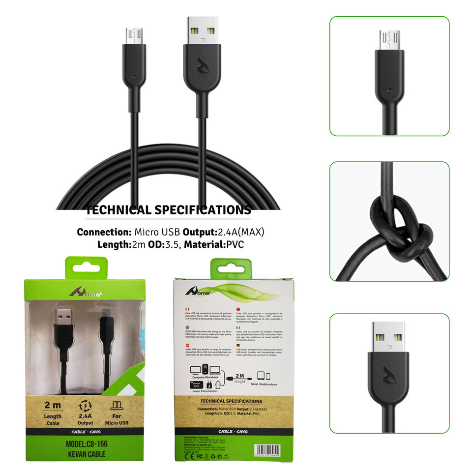 Kevan CB-156 2M 2.4A Fast Charging Cable Pure Copper Aluminum Alloy Compatible Android IOS Micro USB Type-C iPhone 1.5M Length