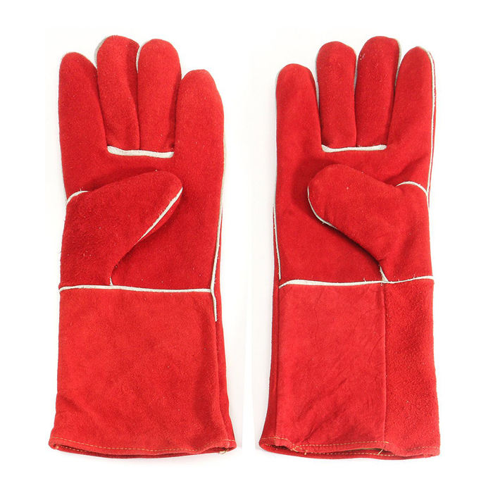 Kevlar Thread Stitching Heat Resistant A Grade Welders Working Gloves Heat Resistant Red Cow Skin Leather Safety Welding Gloves