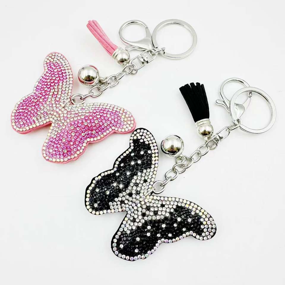Key Chain New crystal butterfly hot diamond keychain fashion charm butterfly shape tassel bag pendant girls wholesale Key Chain