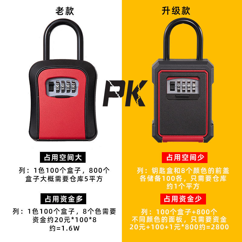 Key Combination Lock Padlock Style All Plastic Shell Replaceable Wire Hook Large Capacity Key Holder