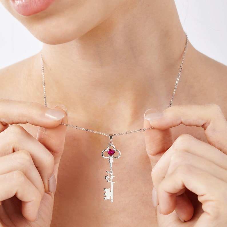 Dainty Diamond Keys Crown Pendant Personalized Name Necklace with Birthstone Elegant Key Design 925 Silver Box Chain