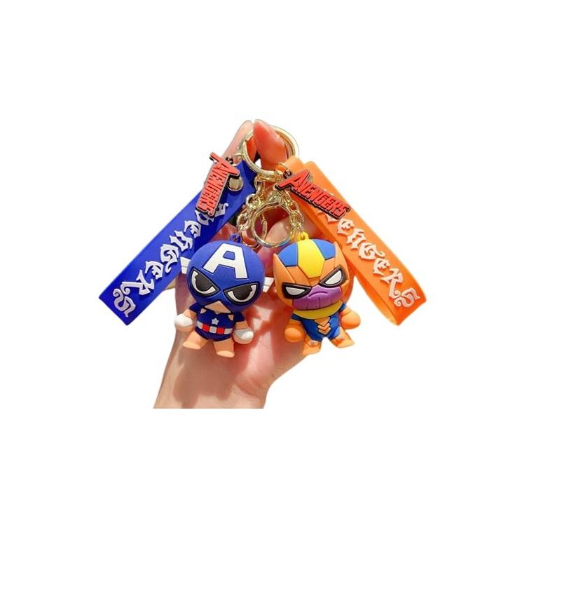 Keyring Black Color Cartoon 3D Rubber Silicone Toy Key Chain for Car & Bike with Key Ring Strap Charm & Metal Hook