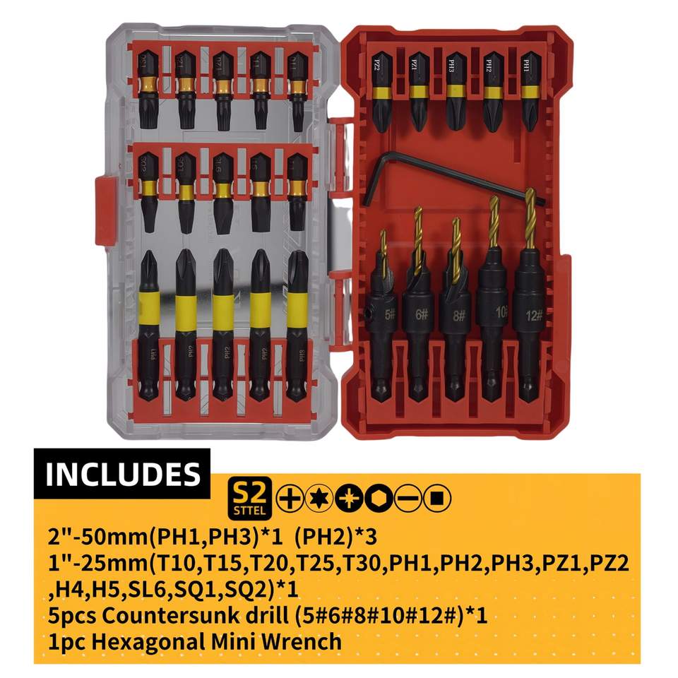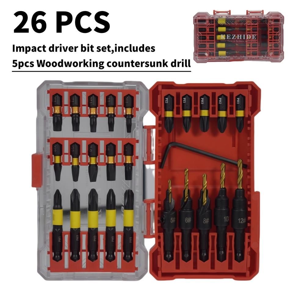 Kezhide Impact Driver Bit Set 26 Pcs With Woodworking Countersunk Drill Bits Professional Grade