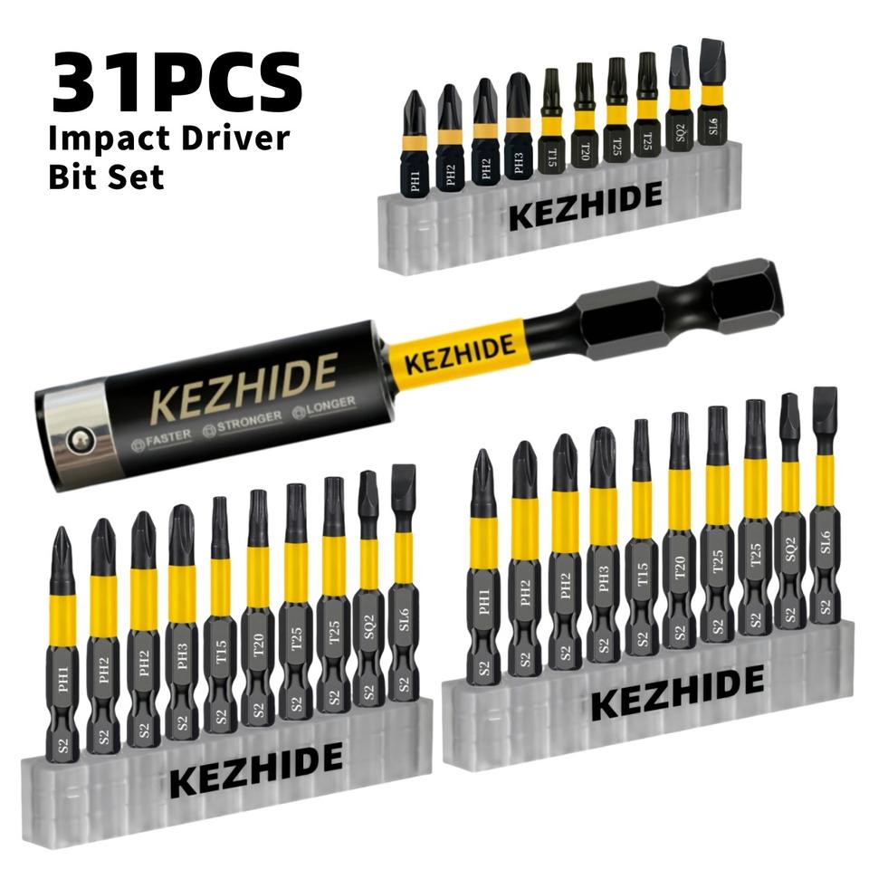 Kezhide Impact Driver Bit Set 31Pcs S2 Steel 1/4 In For Home Maintenance