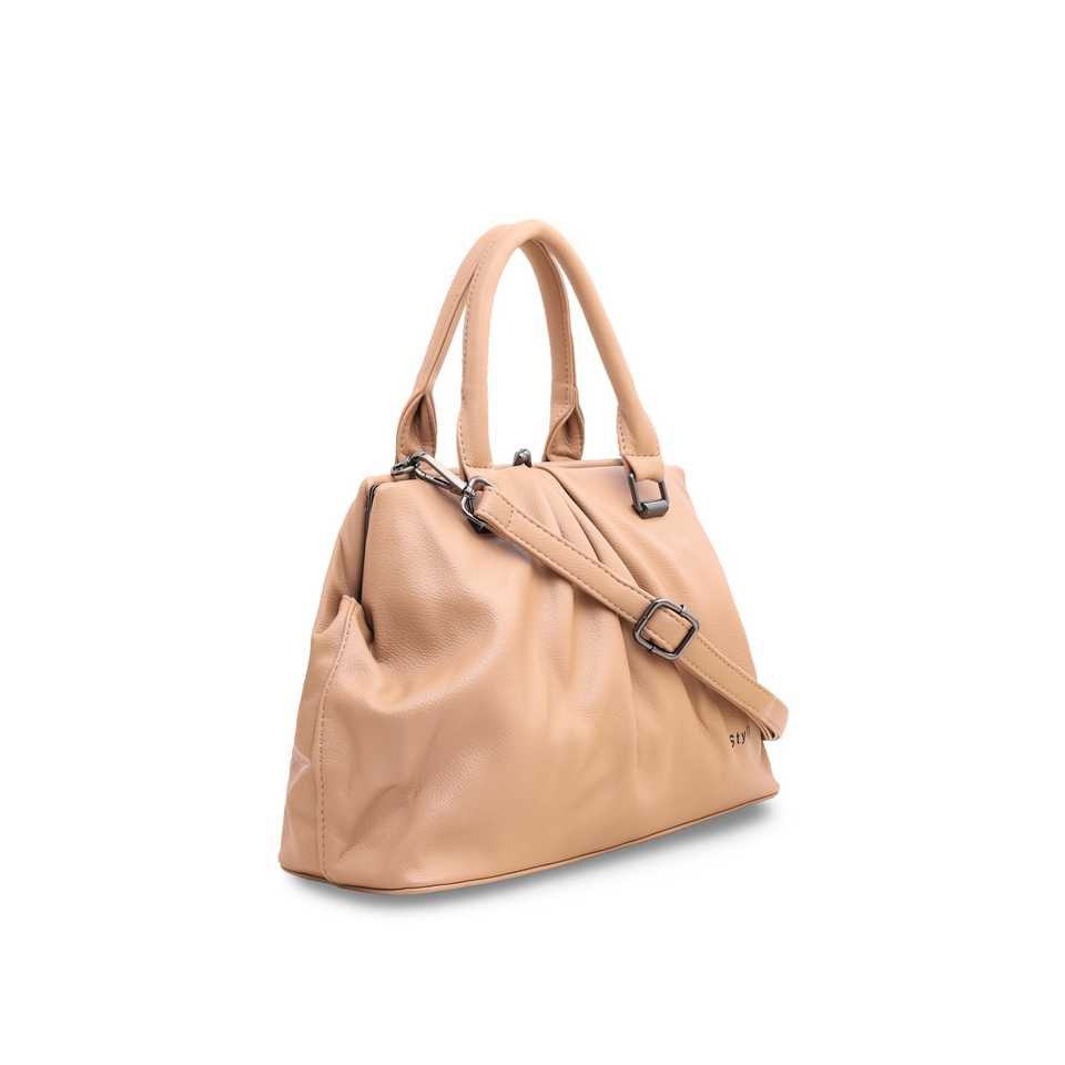 Khaki Cow Leather Handbag P35958 Medium Size Stylish Classic Casual Style Two Straps Open Closure Genuine Leather Lining PU Logo