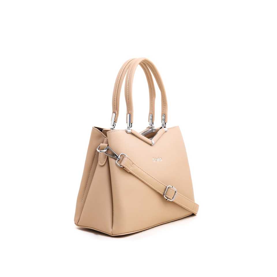 Khaki Cow Leather Handbag P35966 Medium Size Stylish Classic Casual Two Straps Open Genuine Leather PU Khaki Formal Hand Bag