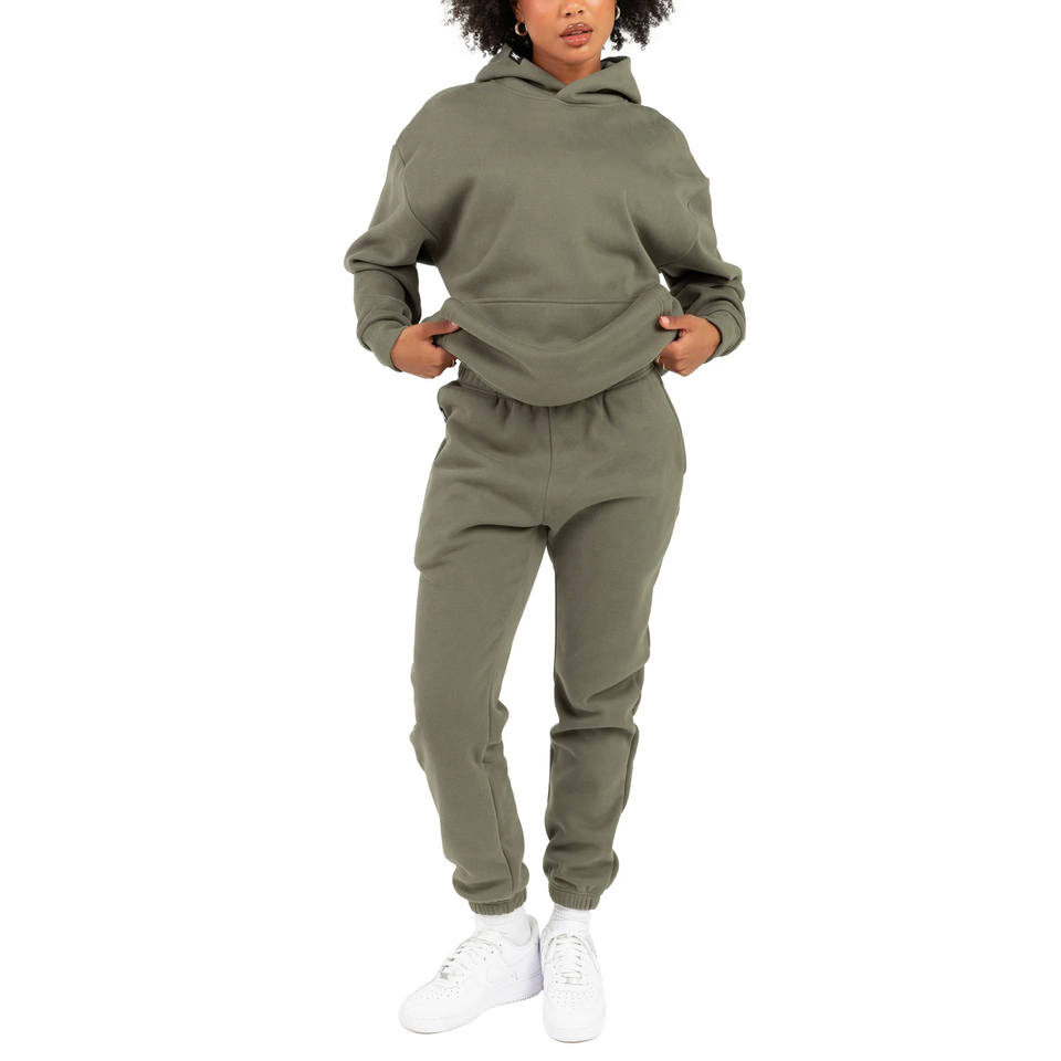 Khaki Green Hoodie & Jogger Set for Women 2 Piece Tracksuit Casual Pullover Sweatshirt & Sweatpants Lounge Wear