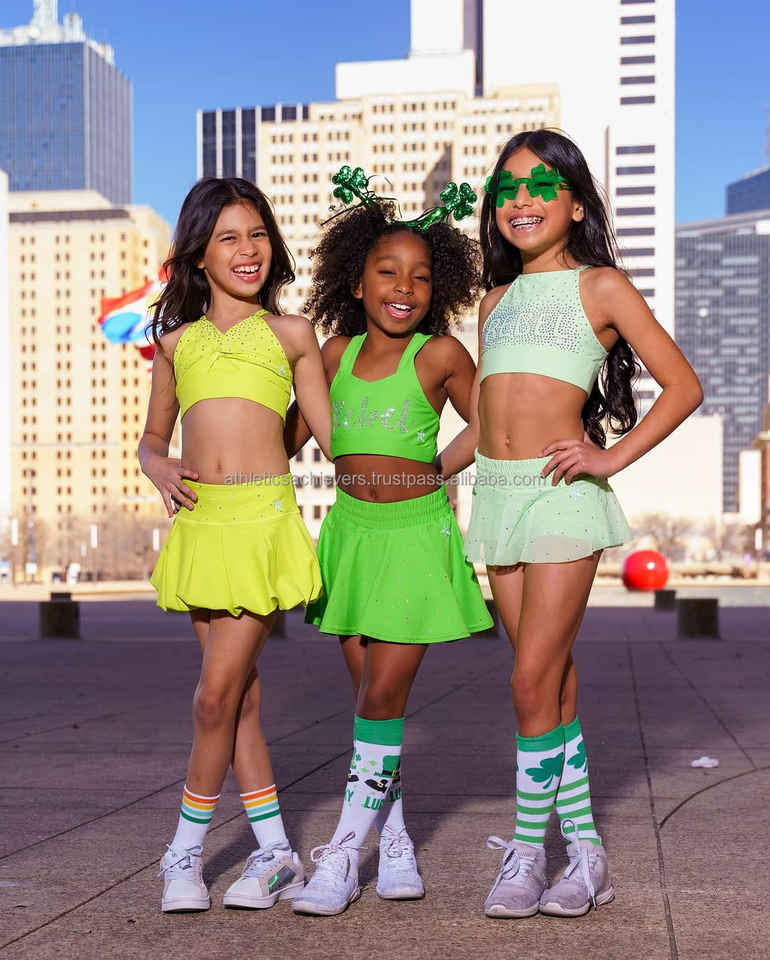 Kid Girls Customizable Sleeveless Cheerleading Uniforms For Children's Cheerleading Women Cheer Lady Rhinestone Printed Uniform