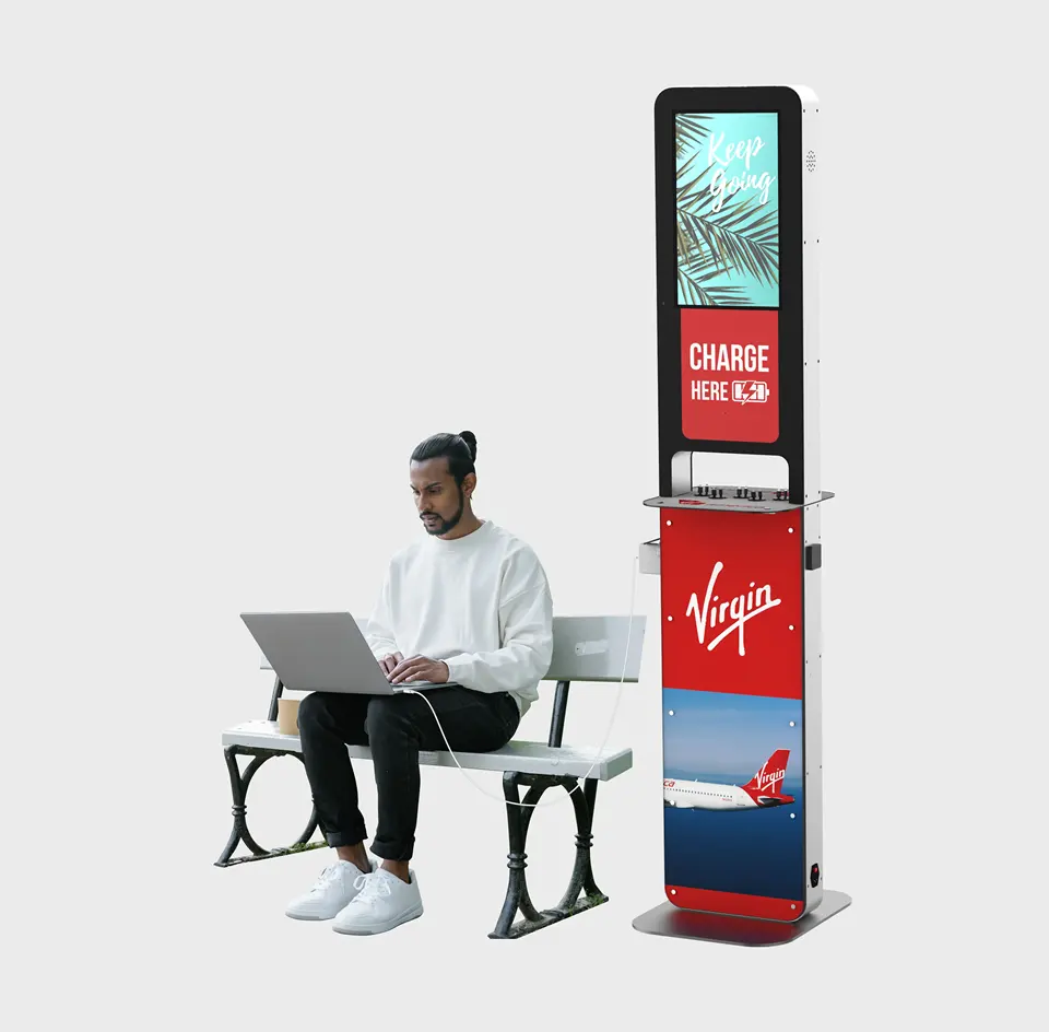 Mobile Phone charing Stand Laptops General electro, Customized Commercial Ad Charging Kiosk, 3 in 1 ues charging, customise the LED light colo