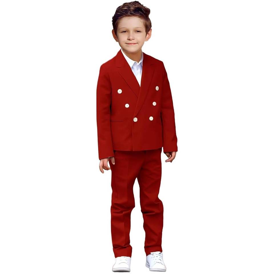 Kids 2-Piece Red Tuxedo Suit Set Formal Slim Fit Boys Blazer & Pants for Weddings Proms & Birthday Parties