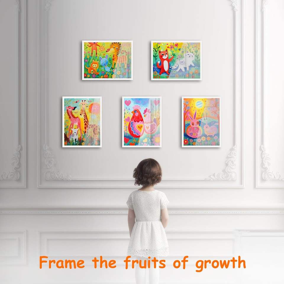 Kids Art Flower Scenery Photo Frame House Style Classic Magnetic Shadow Box Front Opening Wood Wall Hanging