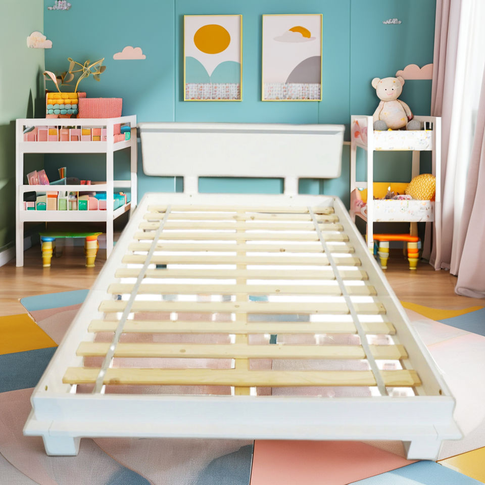 Kids Bed Minimalist White Rubber and MDF Single Frames for Babies and Children