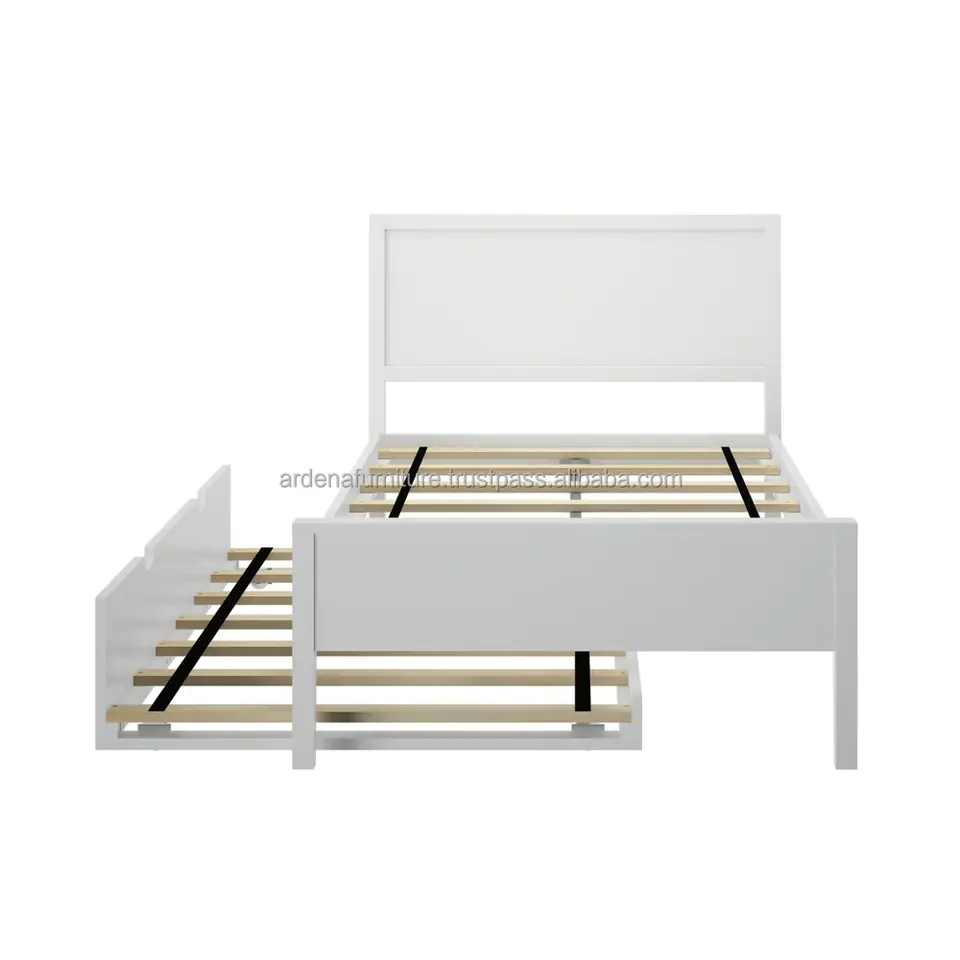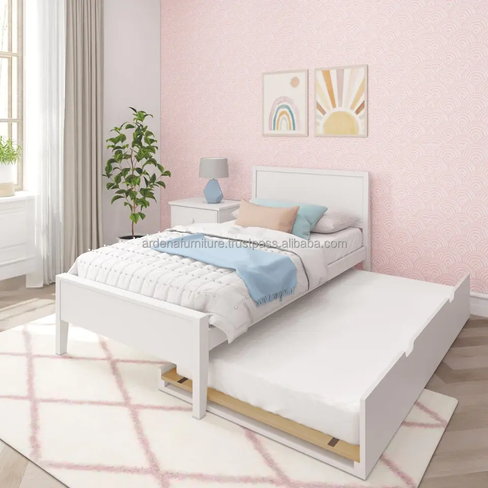 Modern Minimalist Kids Twin Size Bed with Headboard and Trundle Space-Saving Furniture for Bedroom