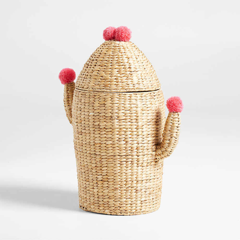 Kids Bedroom Decoration Cactus Shape Natural Water Hyacinth Basket with Cotton Head Nursery Kids Room Decor Wholesale