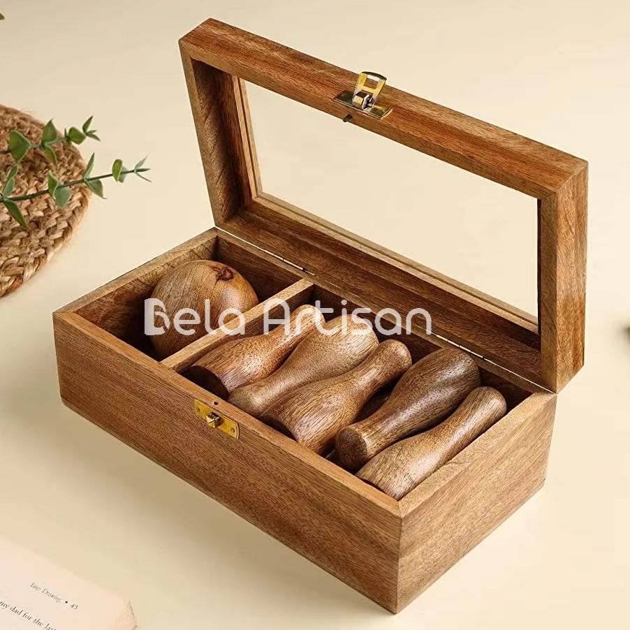 Kids Bowling Ball Set Wood Sports Game Outdoor Personalized Custom Wooden Bowling Montessori Pins Toy
