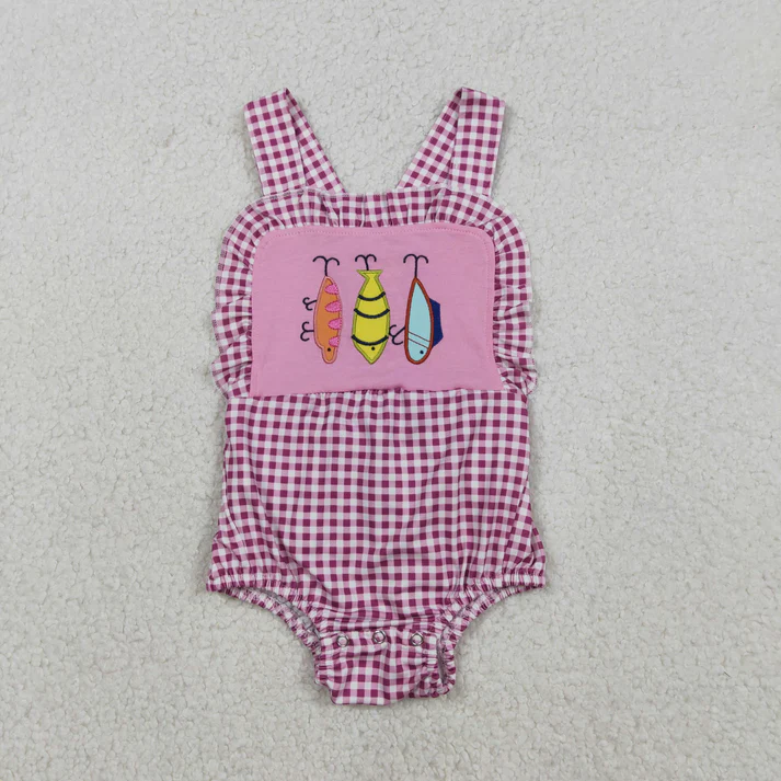 Kids Boys Girls Summer Outfits Fish Bait Embroidery Short Sleeves T-Shirt+Plaid Shorts Set for 2 Piece Clothes Sibling Clothing