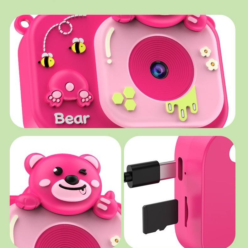 Kids Camera Bear Design 2 Inch Screen With Recording Function Plastic Toy For Children Gift