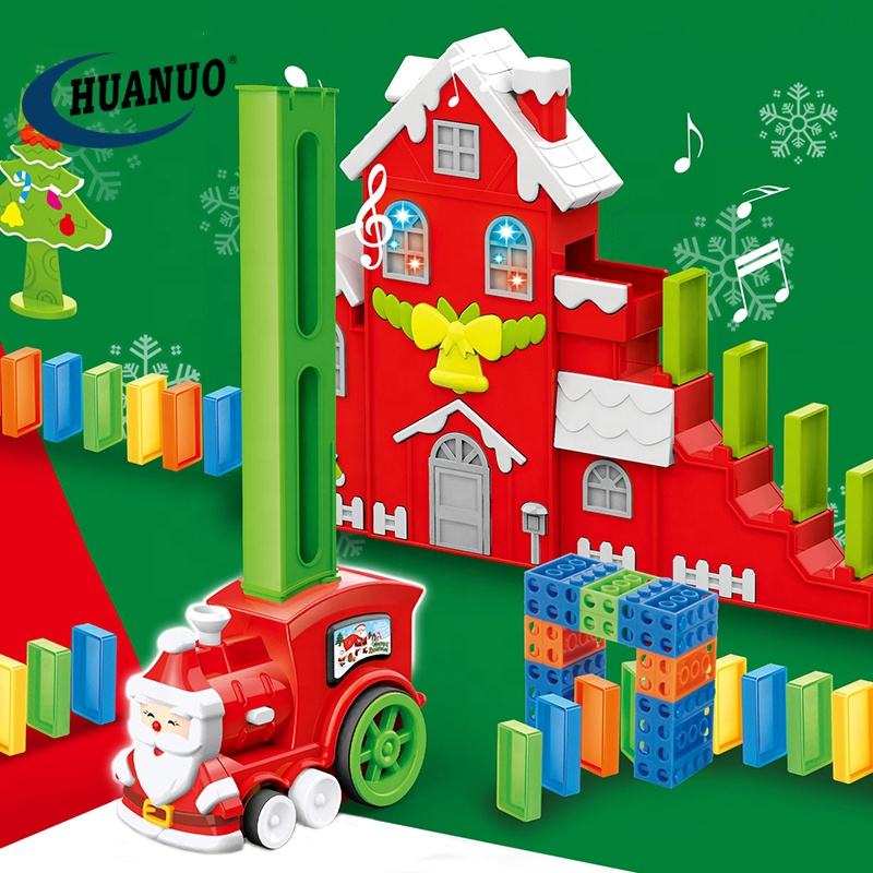 Kids Christmas Gift Toy 120pcs Domino and 48pcs Building Block Toy Automatic Electric Train Dominoes Game Set