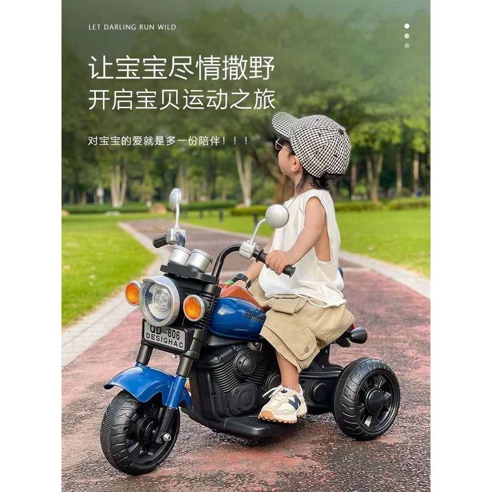 Kids Electric Motorcycle Tricycle Ride On Toy Rechargeable For 1-3 Years Old Children Blue Orange Color