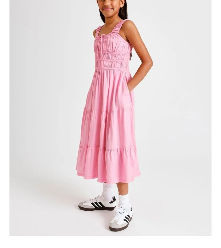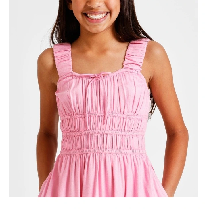 Kids Girls Cotton Dress Featuring Summer Friendly Fabric Decorative Detailing And Comfortable Fit For Playtime School And Family