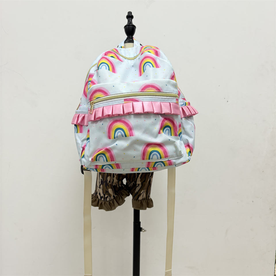 Kids Girls Fashion Backpack Bags Floral Rainbow Print Back to School Books Bag Children Canvas Light Weight Backpack