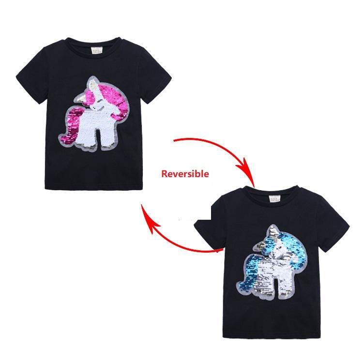 Kids Girls Short Sleeve T Shirt Infant Cotton Color Change Tops Clothing Baby Magic Reversible Sequins Clothes Children T Shirts