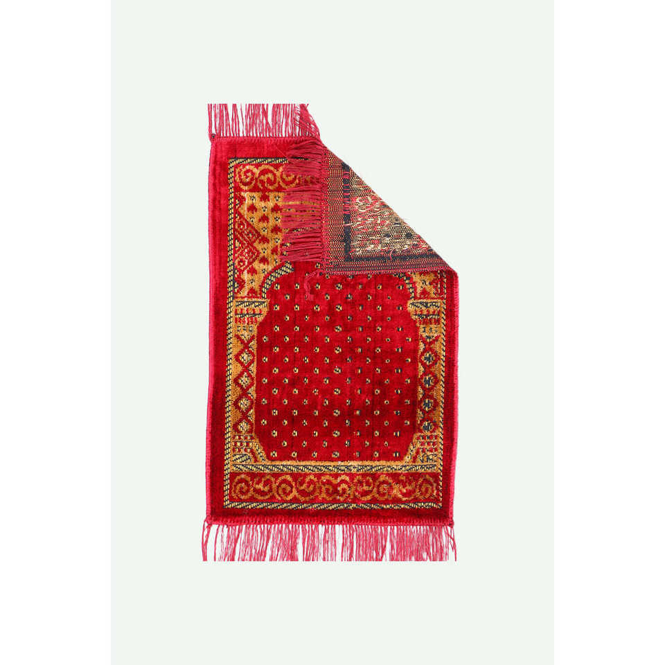 Kids Golden Design Janamaz For Prayer Nawafil Persian Muslim Modern Style Red Wool Polyester Foam Washable for Home Car Travel