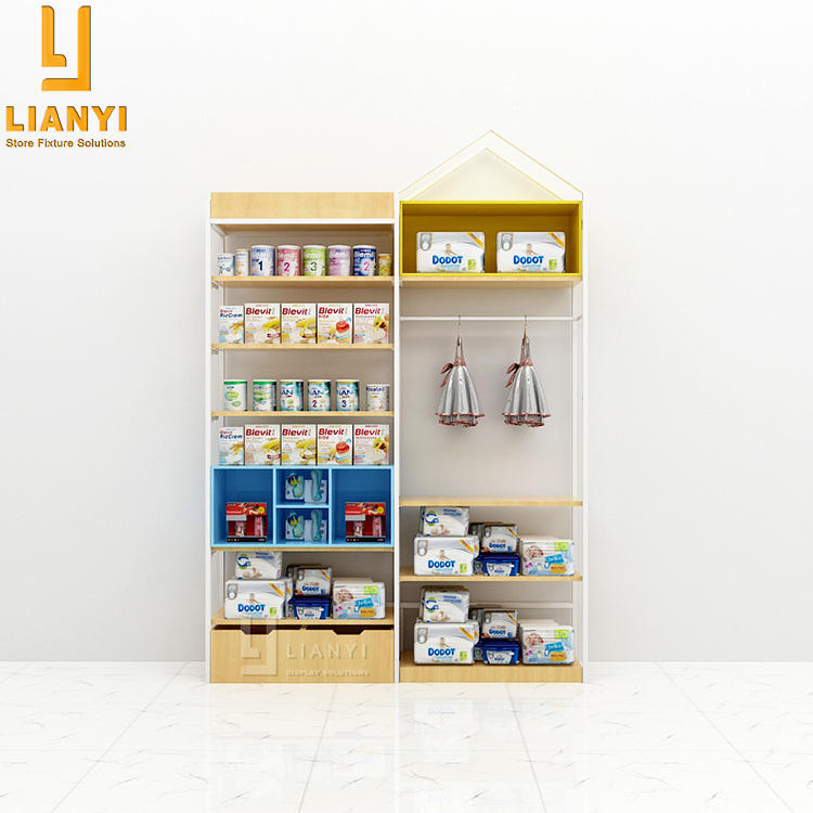 Kids Grocery Store Display Decoration Maternal and Infant Products Shelves Display Stand with Drawer