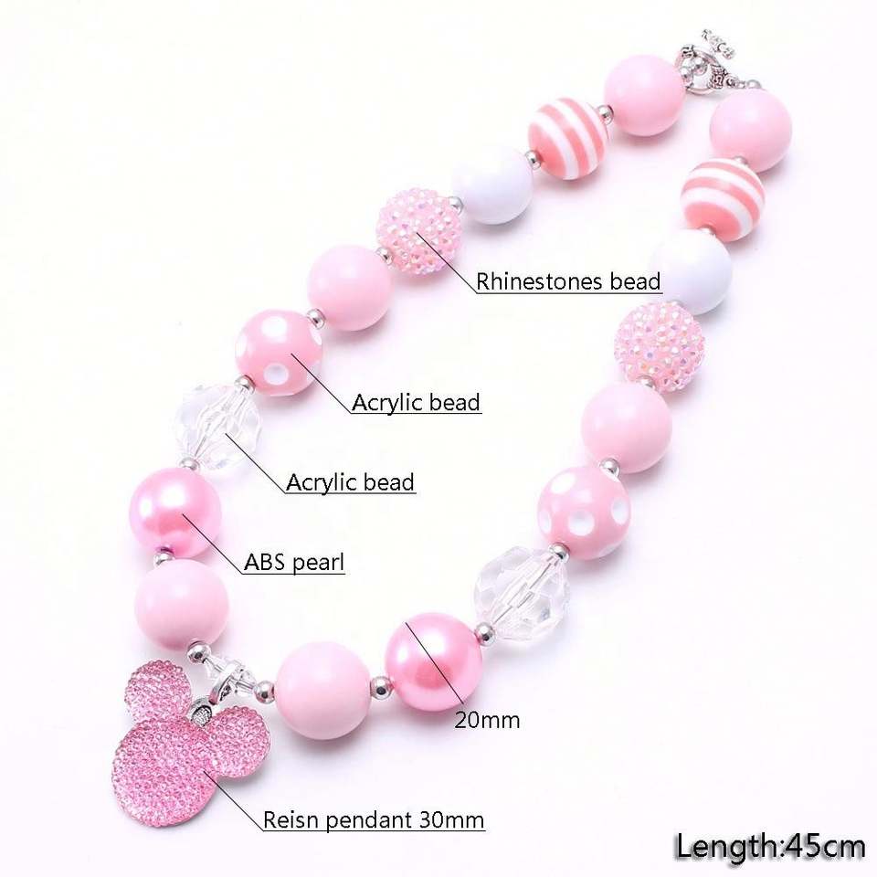 Kids' Cute Cartoon Pink Charm Beaded Necklace Children's Acrylic Rhinestone Chunky Jewelry Gift