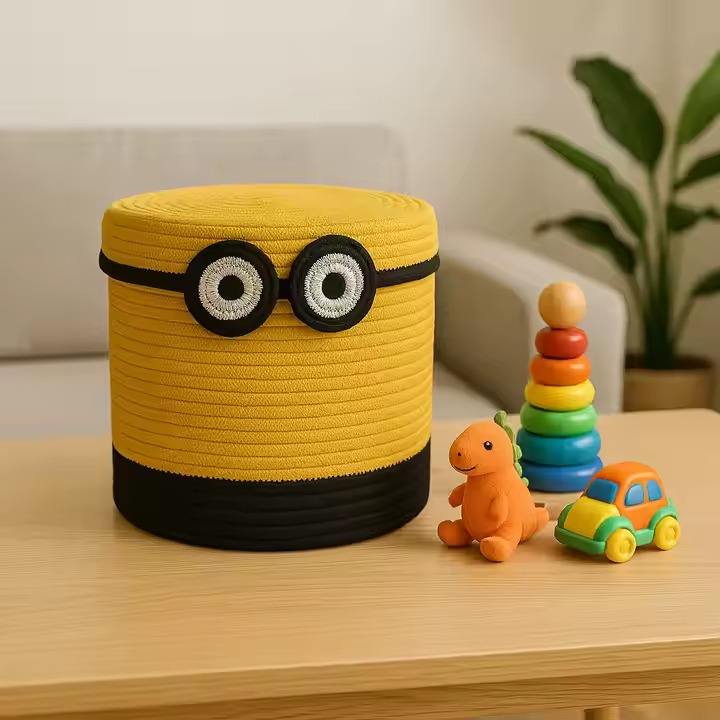 Kids Lid Basket With Beautiful Characters Rope Storage Basket Stuffed For Kids Toy, Baby Laundry Baskets with Lid
