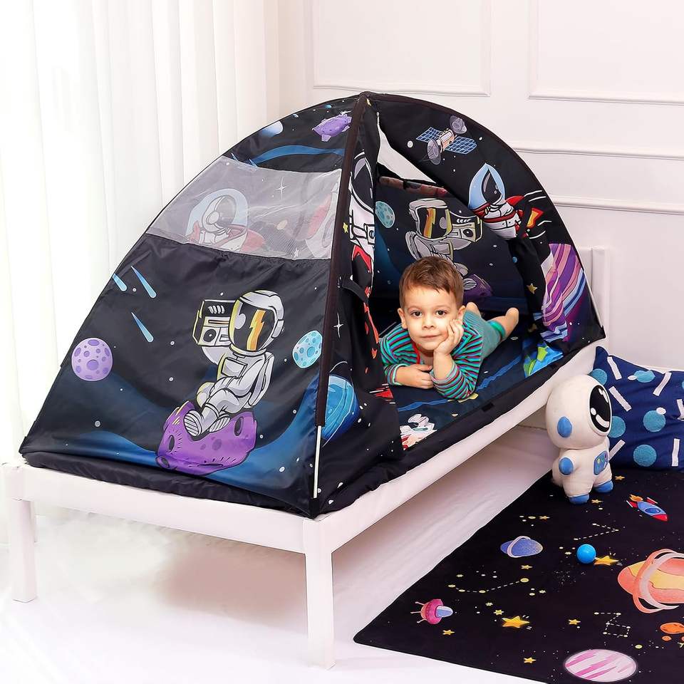 Kids Play Tent Playhouse Indoor Tent Kids Boys Toddler Play House Bed Tents Spaceship Outer Space Rocket Blue