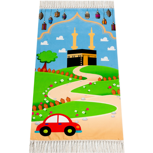 Kids Prayer Rug Silk Digital Printing Custom Design Ramadan Gift Set Muslim Floral Pattern Wedding Gift New