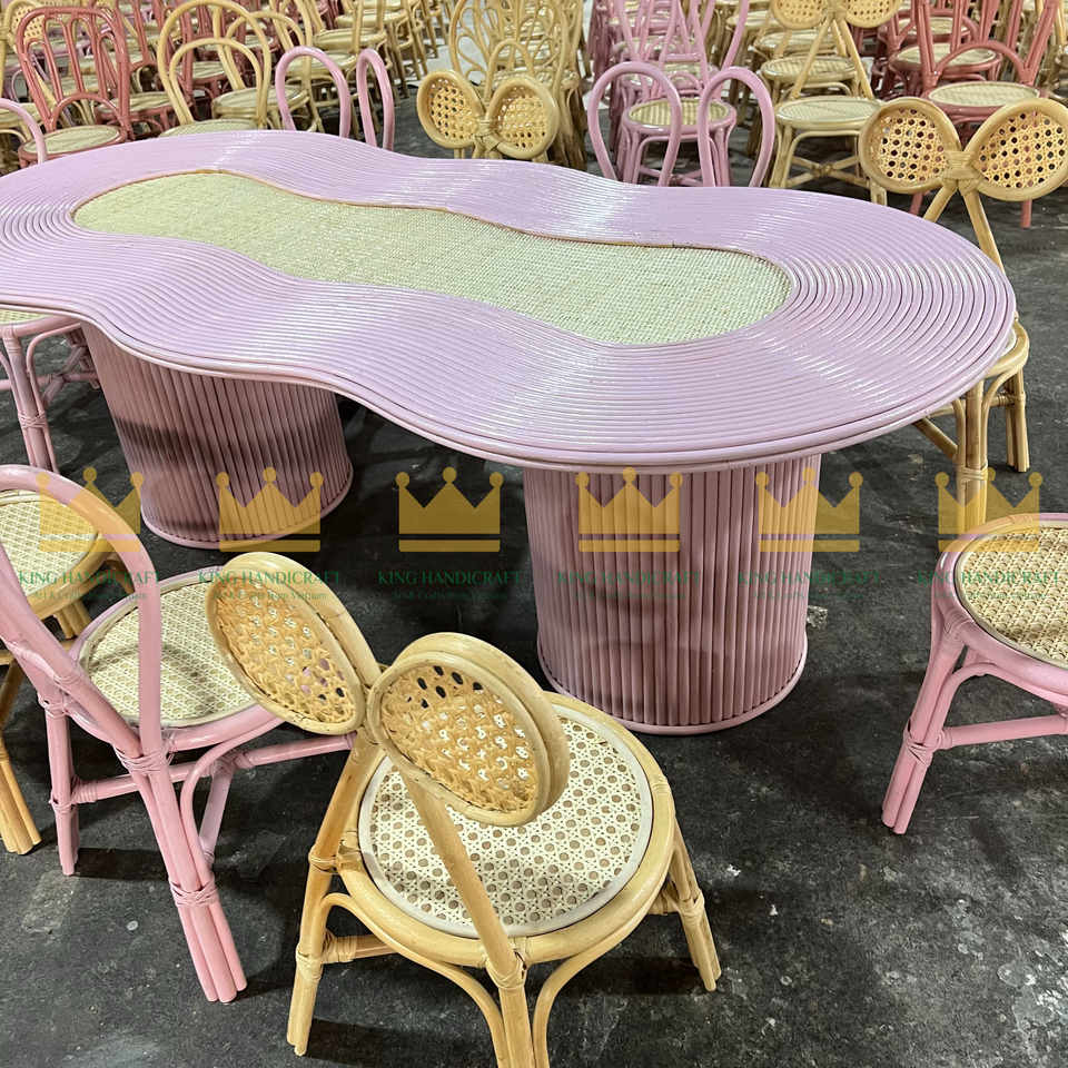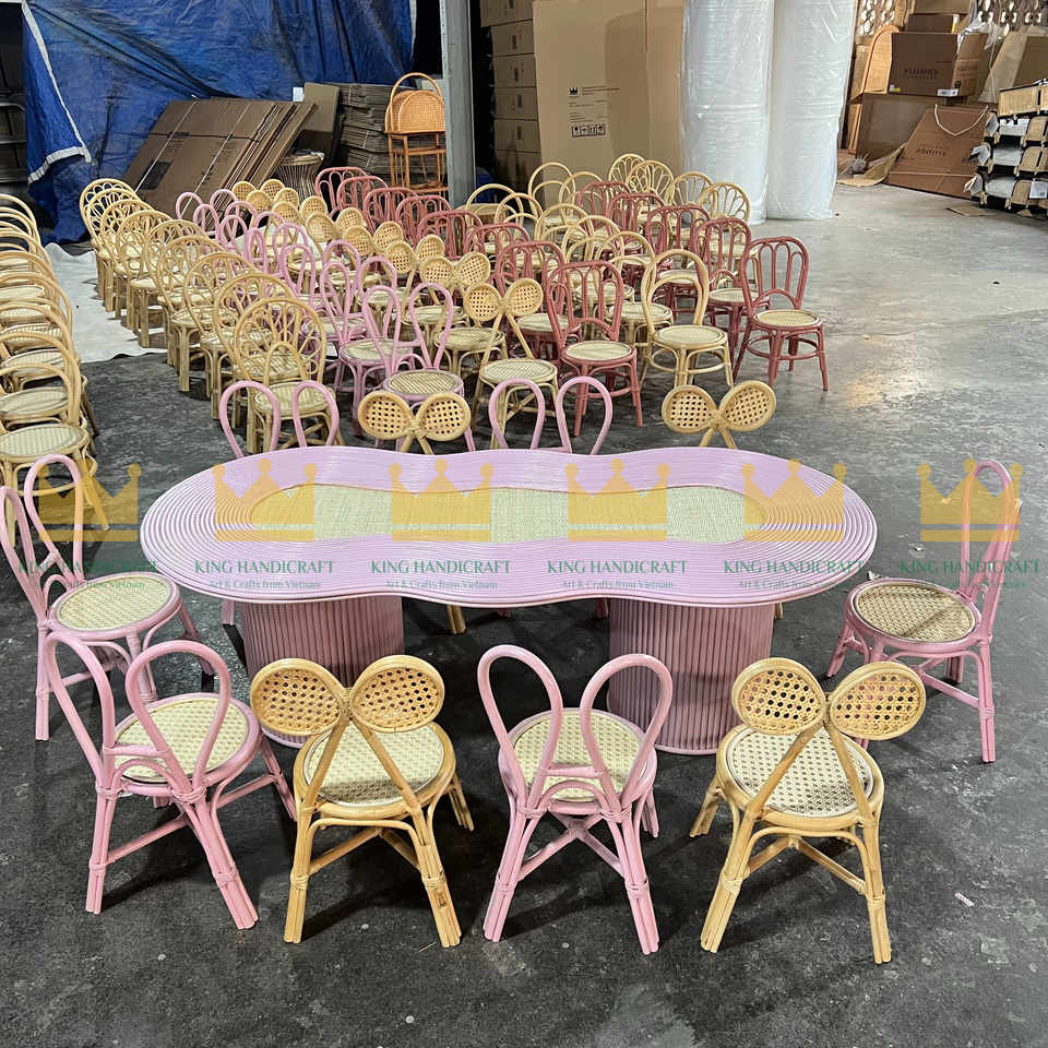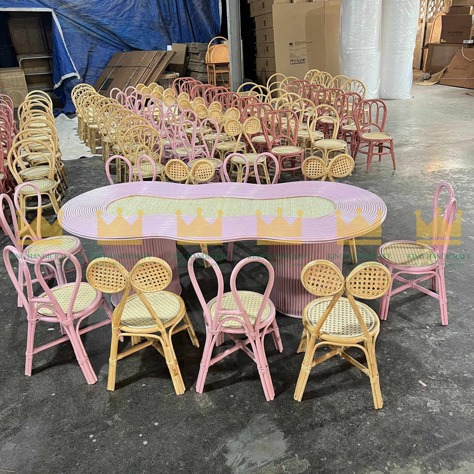 Kids' Rattan Pink and Natural Table and Chairs Set with Chairs for Indoor and Outdoor Birthday Parties