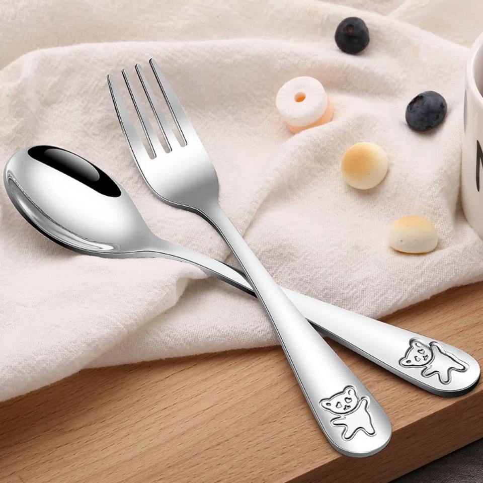 Kids Silver Finished Cutlery Set Stainless Steel Child Friendly Flatware For Home Dining Table Daily Use Toddler Safe Utensils