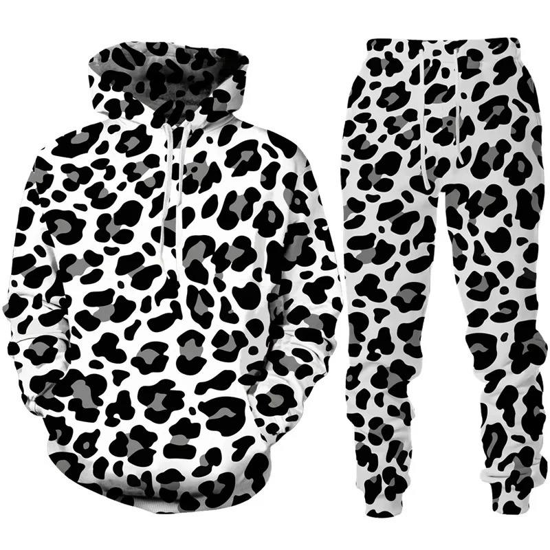 Kids Sweatshirts Set 3D Print Spotted leopard Boys Girls Hoodie Pants Two Piece Loose Long Sleeve Pullover Sweatshirt Clothing