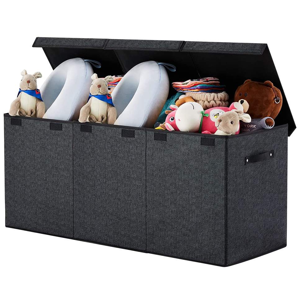 Kids Toy Chest Organizers and Storage for Boys Girls with Double Flip-Top Lid for Nursery, Playroom, Closet, Home Organization