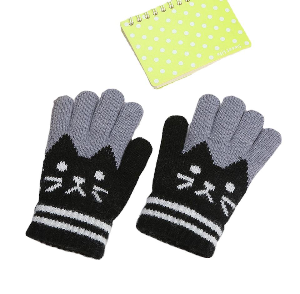 Kids Winter Jacquard Acrylic/Cotton Wrist-Length Outdoor Warmth Cute Cat Knit Fleece Gloves