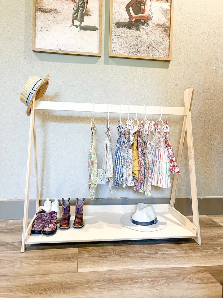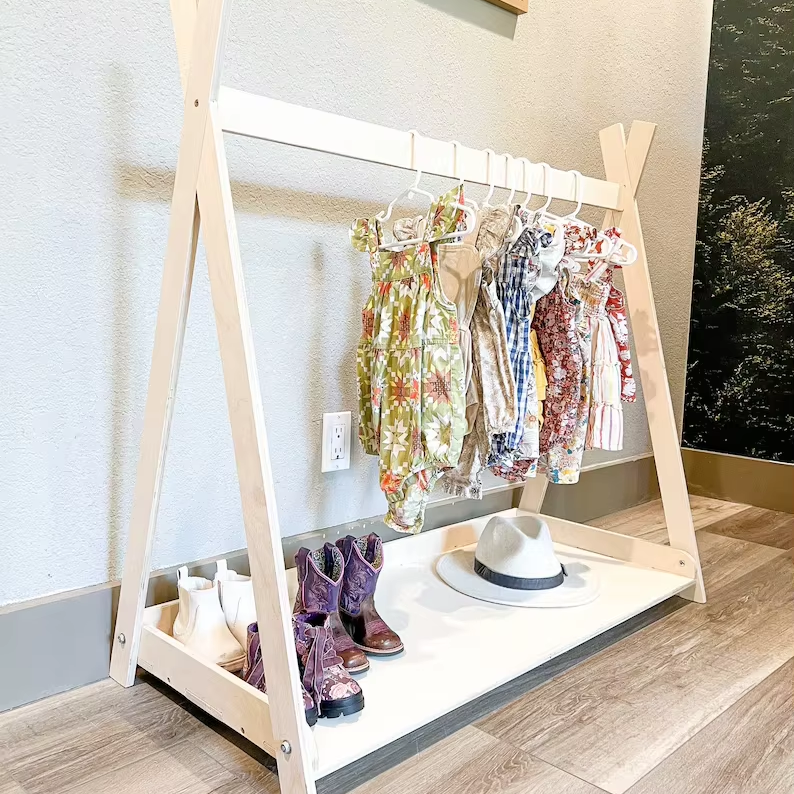 Kids Wooden Clothing Rack for Toddler Montessori Wardrobe Closet Toddler Dress Up Storage Playroom Decor Gift