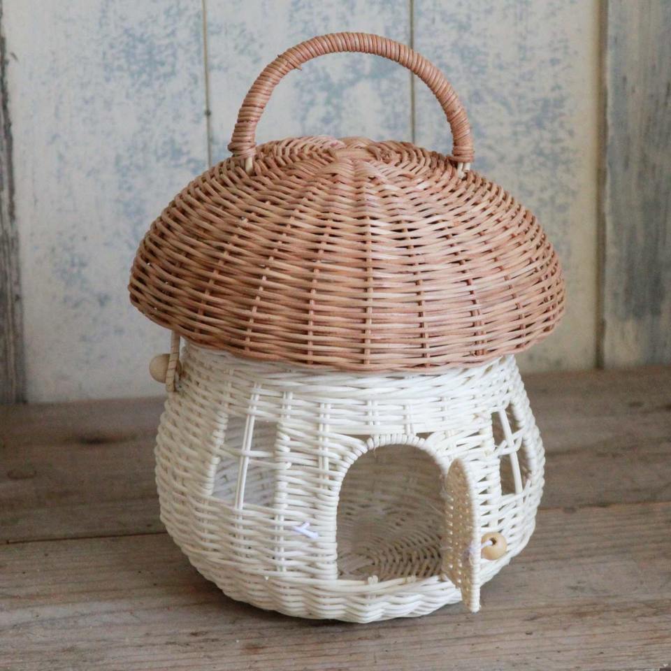 Children lovely handbag toys storage basket eco friendly rattan kids mushroom baskets with openable lid cheapest price