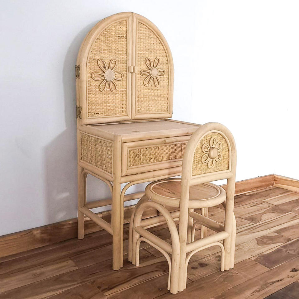 Kids vanity mirrored tables natural rattan makeup table and chair for children wardrobe dressing room