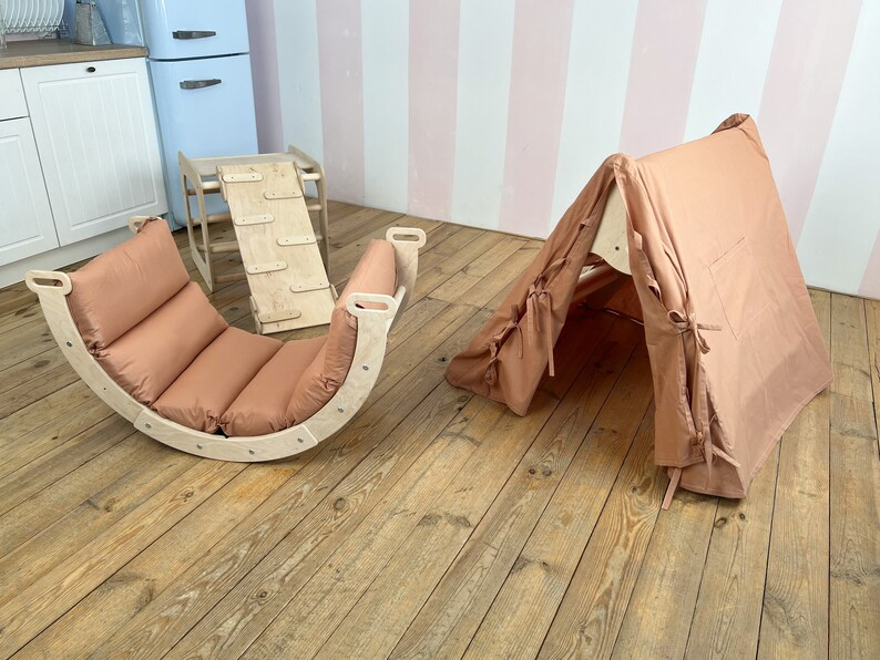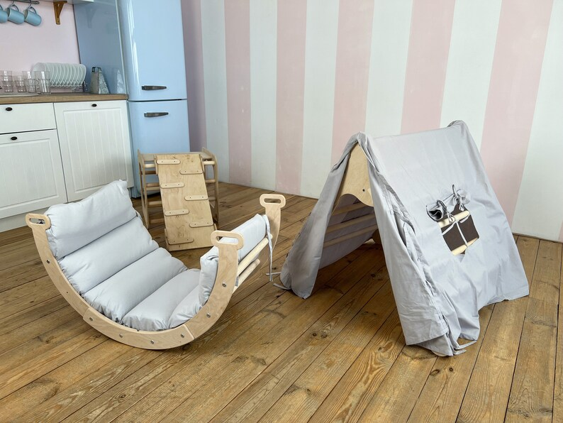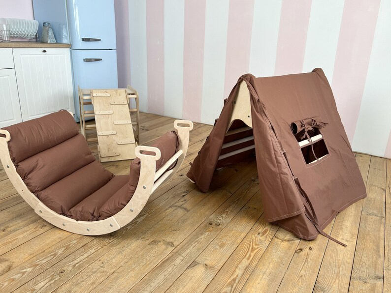 Kids PE & Nylon Wood Gym Gift 6-in-1 Foldable Climbing Triangle Set Play Mat Arch Pillow Cushion Rocker for School