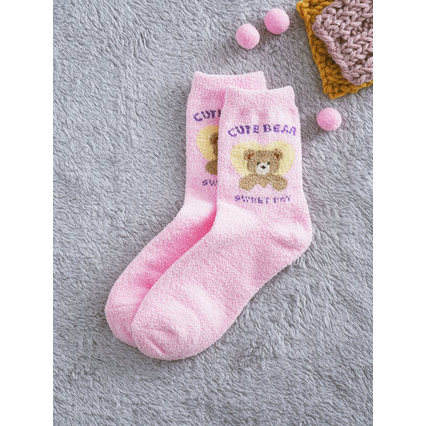 Kikiya Sachs Casual Crew Length Sleeping Socks Breathable Pink Embroidery Print Design Custom Logo Daily Use Knitted Technique