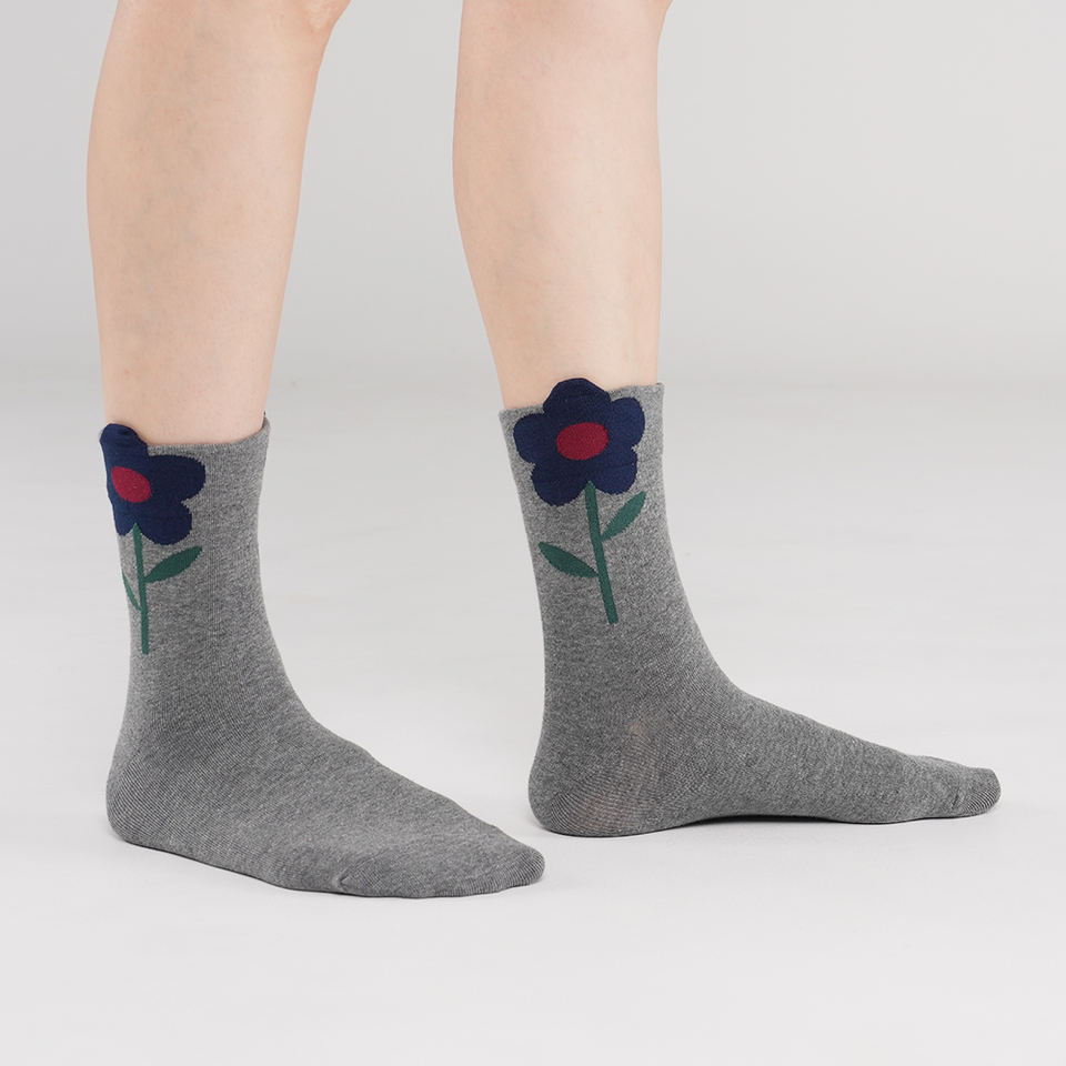 Kikiya Women's Knitted Cotton Crew Socks-Breathable Casual Floral Print Socks with Big Cute Design for Daily Use
