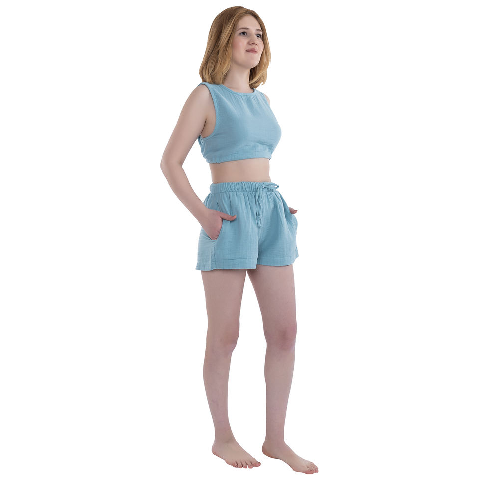 Kiko Baby Blue Crop Top and Shorts Wholesale Cotton Short Set Custom Shorts Sets for Women From Turkey